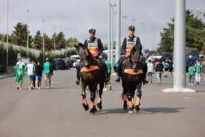 وتحرص مصالح الأمن الوطني على توفير مواكبة شاملة للتظاهرات الكبرى التي تحتضنها بلادنا، وتلك المرتبطة بالمنافسات الرياضية على وجه الخصوص، حيث تفرد لها بروتوكلات أمنية تجمع بين تأمين توافد الجماهير ومغادرتهم، إلى جانب أمن المنشآت والملاعب الرياضية وسلامة تجهيزاتها، فضلا عن ضمان امتداد للترتيبات الأمنية على مجموع المجال الحضري، بشكل يحافظ على انسيابية السير والجولان في مختلف أرجاء المدينة ويضمن أمن الأشخاص والممتلكات الخاصة والعامة، وذلك بما يليق بالمكانة التنظيمية المميزة والثقة التي تحظى بها بلادنا على الصعيدين الإقليمي والدولي.