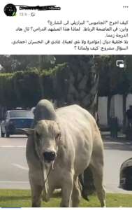 تداول فايسبوكيين على حساباتهم ، فيديوهات وصور عبر حساباتهم على مواقع التواصل الاجتماعي ، لجواميس برازيلية ، وسط موجة من السخرية واستغراب المواطنين ، وهي تتجول بالعاصمة الرباط ، والتي استوردها المغرب مؤخرا من البرازيل .