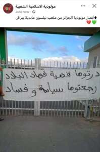 ورفع مناصرو مولودية الجزائر لافتة قرب ملعب خمسة يوليوز كتب عليها ” درتوها قضية في هاد البلاد رجعتوها سياسة وفساد”.